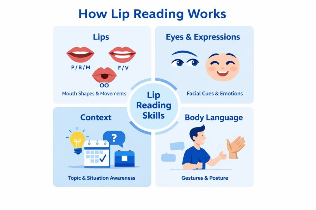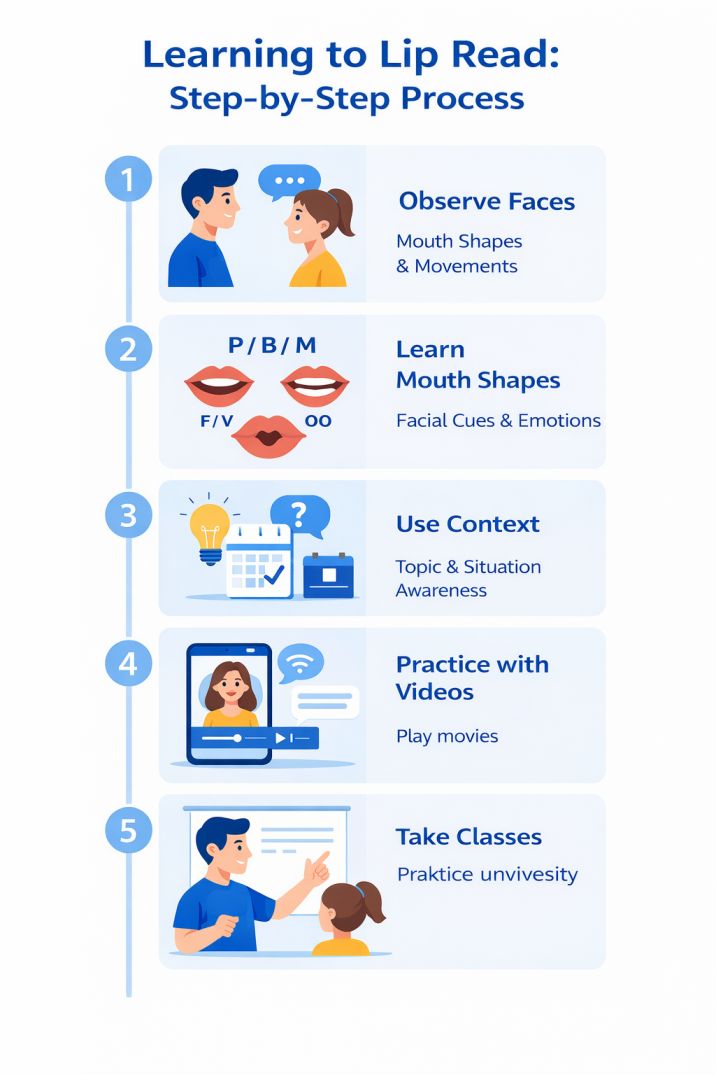- Training and instruction: Lip reading is a skill, not an instinct. Formal classes and structured practice make an enormous difference.